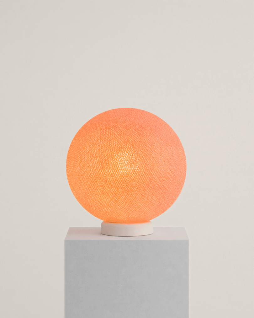 Unsere handgefertigte LED Tischleuchte vereint elegantes Design mit stimmungsvoller Beleuchtung und schafft eine gemütliche Atmosphäre. Die 25 cm große handgearbeitete Kugel in helles Orange aus hochwertigem Baumwollgarn wird in sorgfältiger Handarbeit gefertigt und sorgt für einzigartige Lichteffekte, die das Licht angenehm im Raum verteilen.