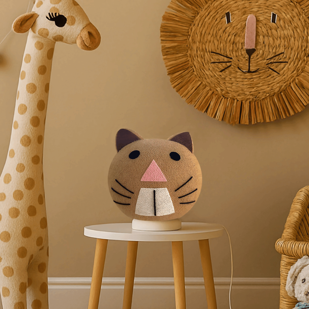 CREATIVECOTTON Handgearbeitete Beige LED Kinderzimmerlampe (Katze)