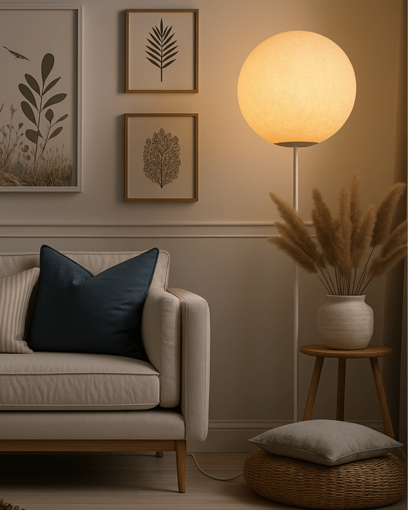 Während eine helle Deckenbeleuchtung oft zu grell und ungemütlich wirkt, sorgt unsere hochwertige Stehlampe für ein angenehm sanftes Licht, das den Raum in eine warme, einladende Atmosphäre taucht. Besonders am Abend, wenn Sie zur Ruhe kommen und entspannen möchten, ist dezentes Licht die perfekte Wahl.