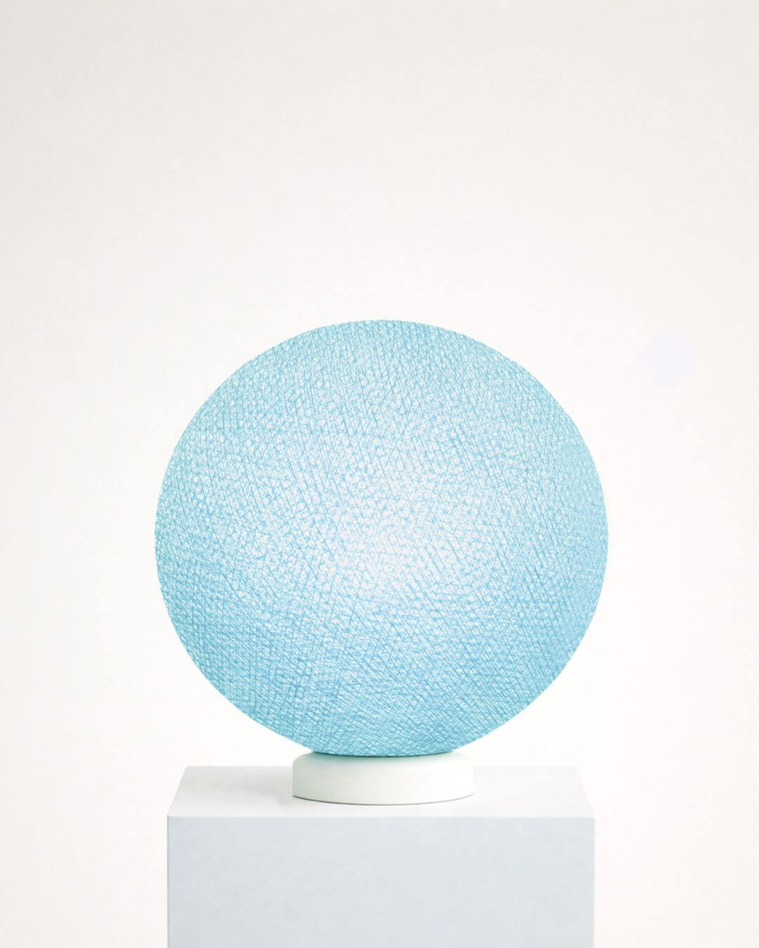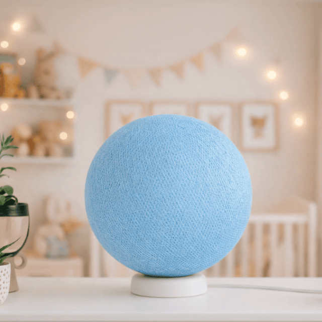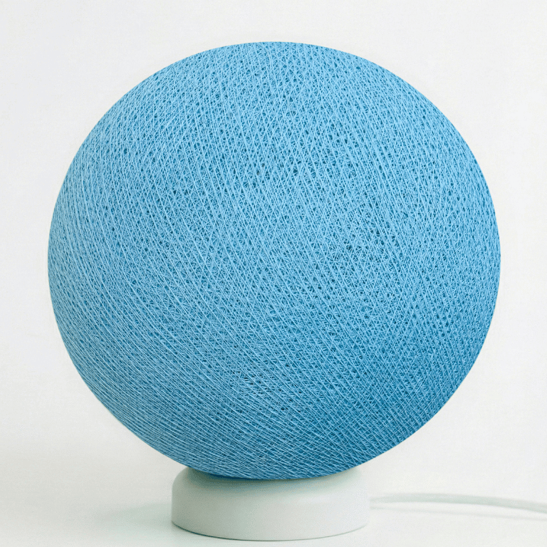 Unsere handgefertigte LED Tischleuchte vereint elegantes Design mit stimmungsvoller Beleuchtung und schafft eine gemütliche Atmosphäre. Die 25 cm große handgearbeitete Kugel in hellem Blau aus hochwertigem Baumwollgarn wird in sorgfältiger Handarbeit gefertigt und sorgt für einzigartige Lichteffekte, die das Licht angenehm im Raum verteilen.