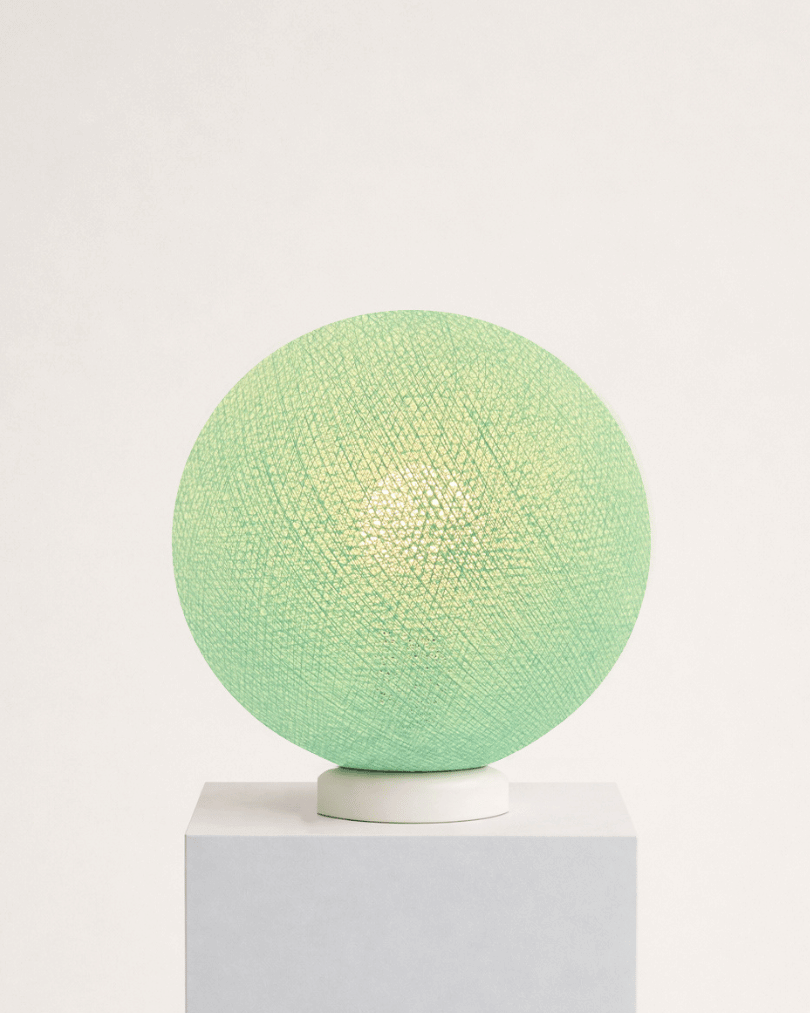 Unsere handgefertigte LED Tischleuchte vereint elegantes Design mit stimmungsvoller Beleuchtung und schafft eine gemütliche Atmosphäre. Die 25 cm große handgearbeitete Kugel in Mint aus hochwertigem Baumwollgarn wird in sorgfältiger Handarbeit gefertigt und sorgt für einzigartige Lichteffekte, die das Licht angenehm im Raum verteilen.