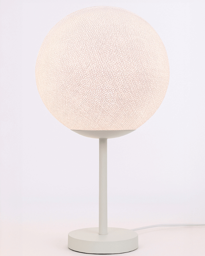 CREATIVECOTTON Handgearbeitete LED Tischlampe mit runder Baumwoll-Kugel (Weiss, 25 cm)