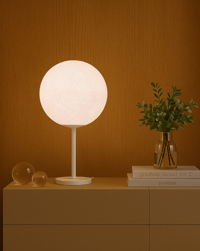 - Handgefertigte Tischlampe mit rundem Cotton Ball für sanfte Lichteffekte